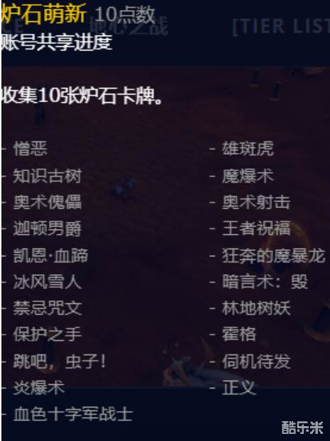 就在最近炉石传说国服也将要回归,玩家终于可以回到国服玩游戏了,炉石萌新是本次魔兽世界和炉石传说联动提供的一个成就,那么下面酷乐米小编来告诉大家魔兽世界炉石萌新成就怎么获得。