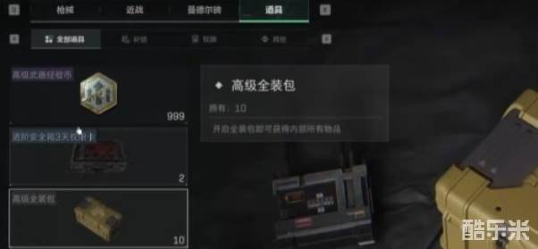 三角洲行动中玩家在搜刮资源的时候会遇到很多箱子,除了常见的密码房、密码箱,还有一种名为“高级全装包”的东西,三角洲行动怎么使用全装包呢?下面和酷乐米小编一起来看看吧