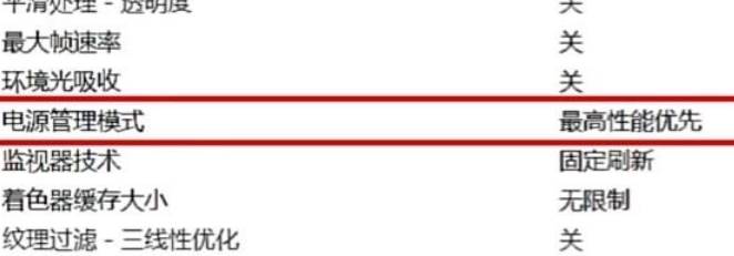 其他的多项也都设置成关闭,然后是电源管理模式选择以“最高性能优先”,监视器技术选择“固定刷新”,着色器缓存大小设置成无限制,纹理过滤质量选择高质量,这个如果设置得太低的话,画面会出现许多马赛克。