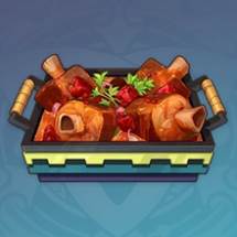 香味极为浓厚的大块炖肉,入口辛辣。阿乔喋喋不休地在一旁对你念叨:「以往这可是我们猎捕到大家伙之后才会犒劳自己的美味,今天你能不费半点力吃到,是你运气好上了天!还不快快为我进贡美味果汁?」对此基尼奇的补充是:「吃你的,别听他废话。」
