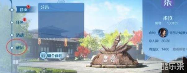 2、进入到盟会界面后在左侧找到“成员”菜单