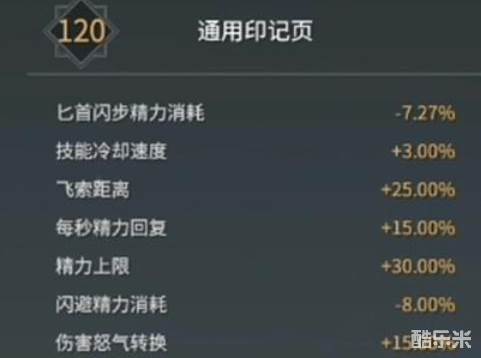 这套天赋印记搭配主要是个匕首宁红叶使用的,这套天赋印记减少了7.27%的匕首闪步消耗和8%的匕首闪避精力效果,可以让匕首宁红叶拥有更大的操作空间。
