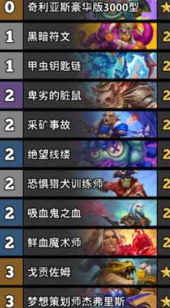 血DK:小版本的新卡——梦想策划师杰弗里斯为血DK增加了更多的资源,在应对前期超展开能力较强的法师面前,血DK凭借脏鼠、绝望线缕还有邪爆也能较好地遏制法师的进攻。扣子的优秀过牌能力,再加上吸血鬼之血的回复能力,能让血DK应对各种快攻铺场卡组时轻松拿下。