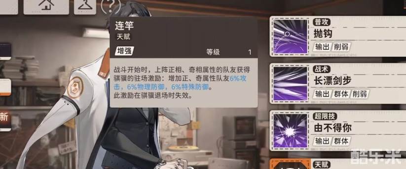 骐骥的普通攻击一共能够给敌人造成三种不同的负面影响,而且是百分之百触发,削弱属性还是非常稳定的。比较适合打一些敌方基础属性和倍率比较稳定的角色,其实在主线关卡期间打一些普通小怪看不出来太大的区别。他的支援技能也是对敌方群体造成伤害,还有一到三个属性的负面影响,给对手的负面影响叠多了之后还能够增加自身的输出,技能命中对方还可以打出额外的控制效果,这也就是说为什么他越打越强,后期爆发力高。