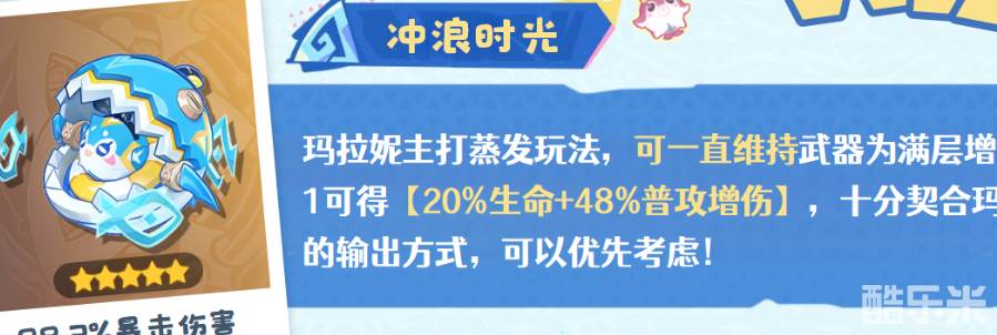 ① 玛拉妮主打普攻,大典的重击增伤对玛拉妮没有提升,只能获得副属性暴伤和特效的生命加成。