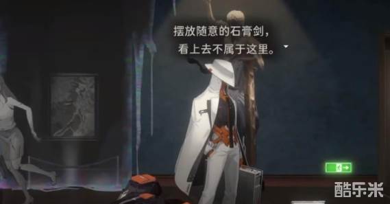 追踪完周霞之后玩家们在3楼4号展厅两个逃跑石像旁边可以看到一个站立举手的假人石像,靠近之后就可以捡上石膏剑。接下来回到5号展厅,和英格利特进行交谈,进入通风管道,来到二楼休息室向右侧稍微走一段距离,就可以在墙上看到一个竖着大拇指的石像,这个石像就是专门用来插石膏剑的,插回去就可以获得9号线索了。