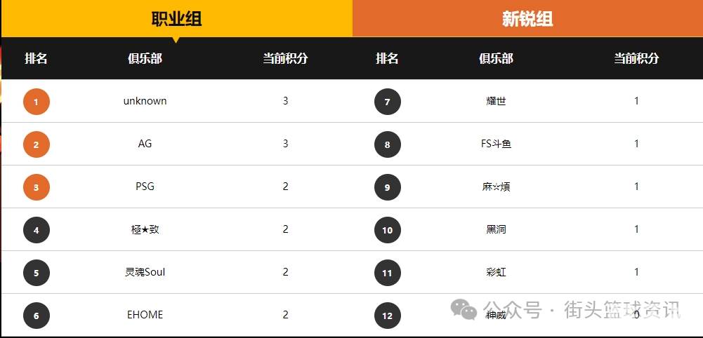 《街头篮球》FSPL首周完美落幕 大魔王UNKNOWN全胜领跑积分榜