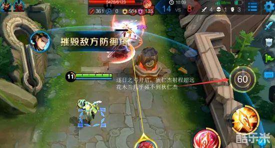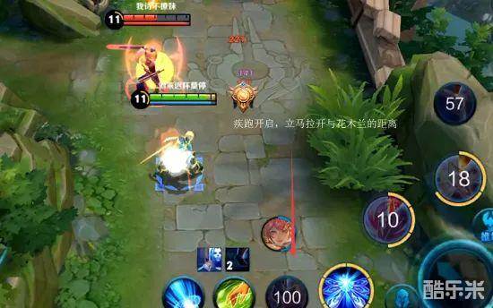 花木兰判断比较近的距离直接开启了3秒强控技能,然而狄仁杰这个时候疾跑立功,恰好使自己处于一个比较安全的距离,花木兰只能够被动挨打。