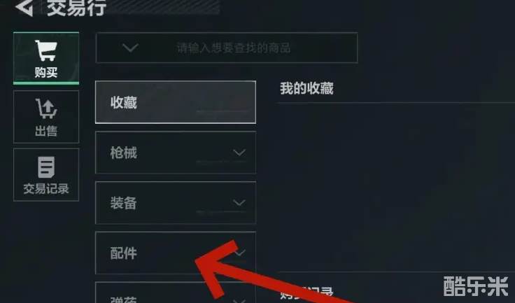 2、进入交易行界面后,需要点击购买页面下的配件