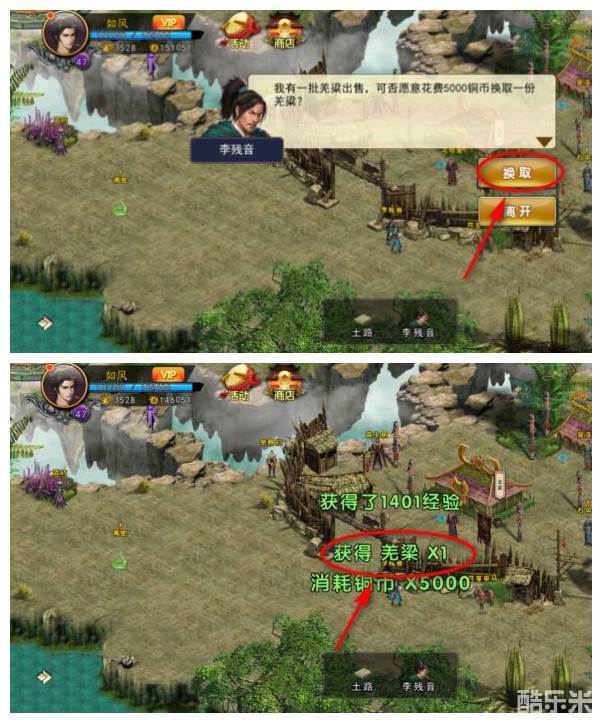 4、最后选择【换取】,花费5000铜币就能买到羌粱了。