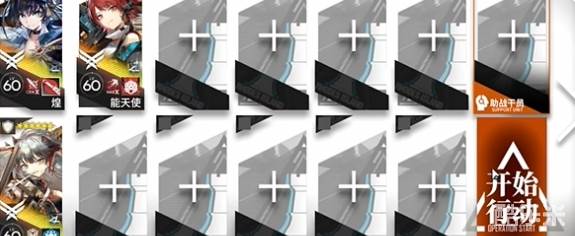 2、站位选择:能天使放在第一行右侧格子上,将煌放在右上方第1个格子,塞雷娅放在第三排第1个格子。