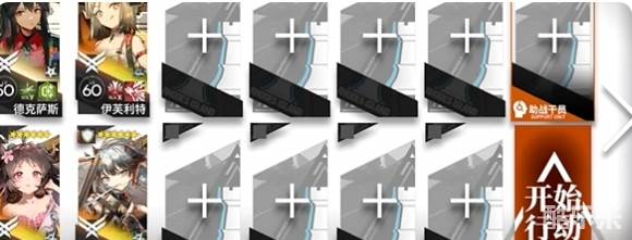 2、站位选择:将德克萨斯放在第一排左侧,伊芙利特放在下方左侧,其他角色的位置如下图所示。