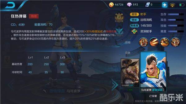 马可波罗是一名攻速性的射手英雄,普攻可以发射两发子弹。一技能拥有远程消耗的能力,可以在线上有效的压制敌军,二技能增加了他的灵活性,面对刺客的切入也能从容逃脱,找到合适的输出位置打出爆炸伤害。