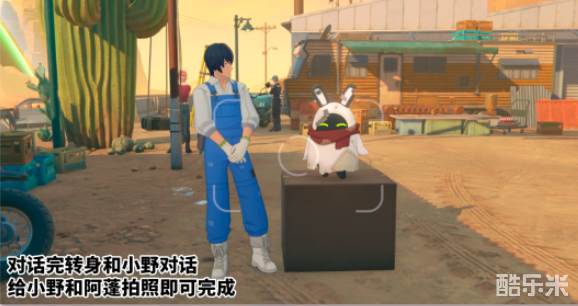 3、完成所有多话后,转身和小野对话,然后给小野和阿蓬拍照即可完成任务