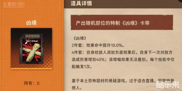 4件套:自身给敌人添加负面效果后,自身下一次对敌方造成伤害增加40%;该增幅效果无法叠加,每个技能中仅能触发1次。