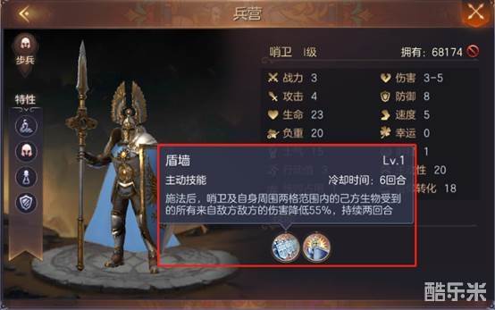 哨卫的技能在三大种族步兵中,属于最优秀的,主动、被动都是减伤。作为一个前排,拥有双减伤技能肯定是能极大的减少受到的伤害,前排坚持的越久,则远程的输出越高。
