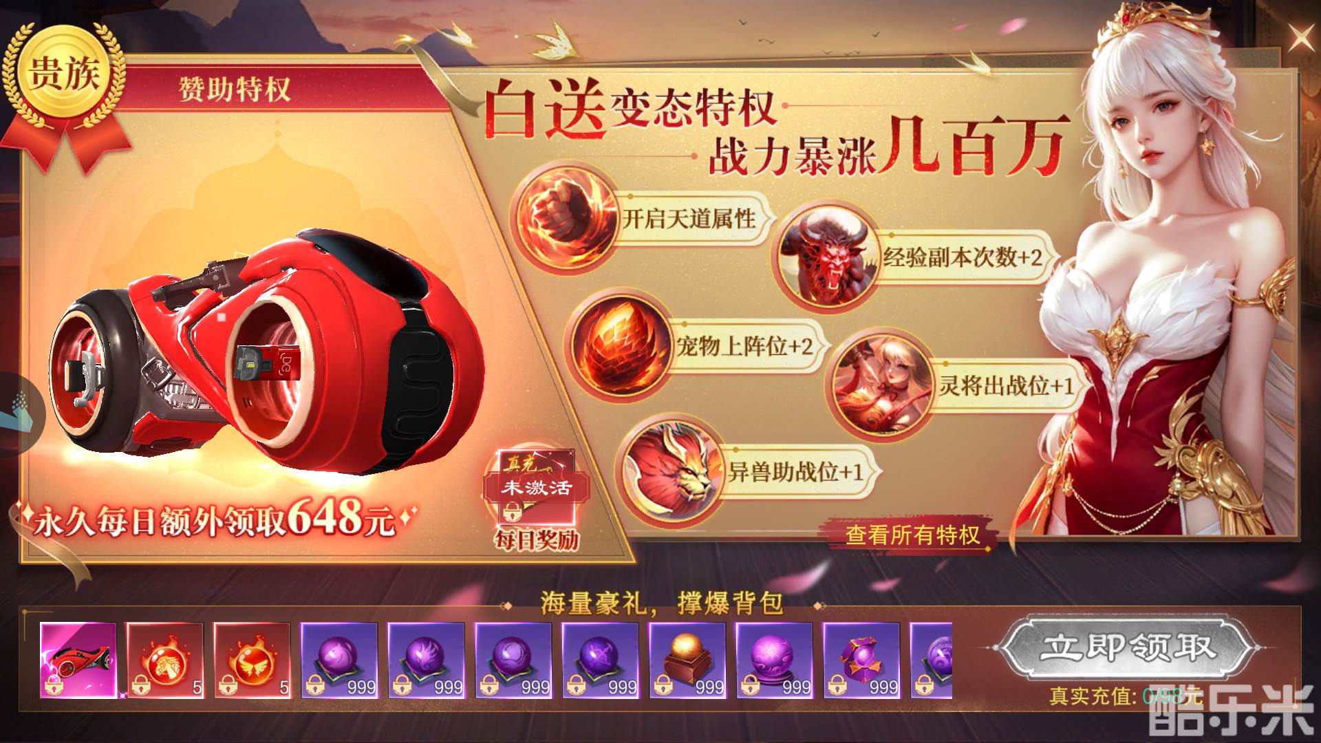 核心亮点:永久每日领取648元宝(或游戏内等价货币),VIP等级飞升不是梦。
