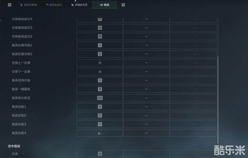 这个是用来在玩家操控载具的时候对载具各种功能的使用。包括上下车、武器的使用、载具技能等等。