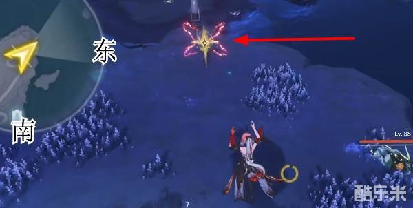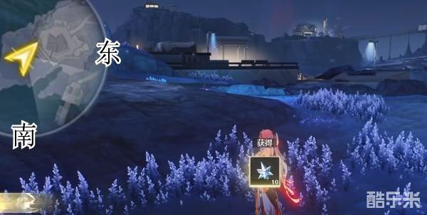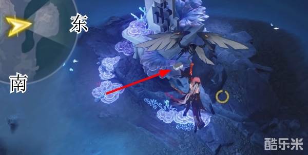 2、在西北方向小地图左上角抬头,就是在这个顶上就可以拿到了。