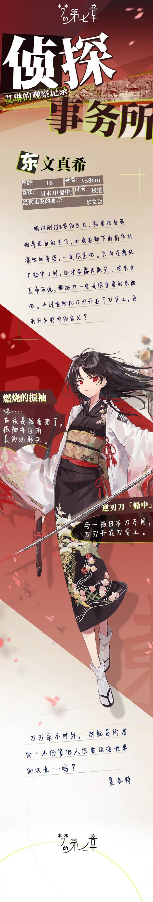 每当东文会的大家对她寄予厚望,念叨着未来真希一定是个好的领导者,她却总在心里默默地想——如果自己真的成了四代目,要做的第一件事就是解散东文会!
