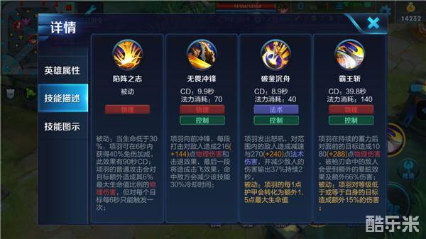 王者荣耀S9赛季项羽得到了版本变动,强化了战士定位,为召唤师提供了更多的选择空间,不论是坦克还是战士,控制技能的使用时机一定是最重要的。相信各位召唤师经过S8及更早赛季的群雄逐鹿,早已掌握了最佳的切入时机,期待你们精彩的表现。