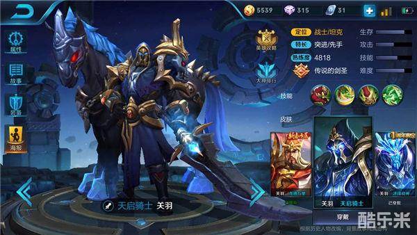 铭文解析:四级铭文提供的属性比较均衡,既增加了关羽的输出也加强了生存和移速。五级铭文则比较侧重于关羽的攻击能力,物理攻击和物理穿透加成让关羽有更强的输出和作战能力,移速加成让关羽能更快的进入冲锋状态发挥出最强战力。