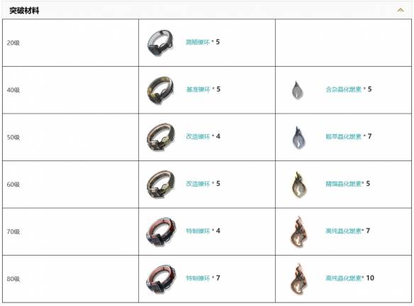 初始 / 20 / 40 / 50 / 60 / 70 / 80 / 90级: