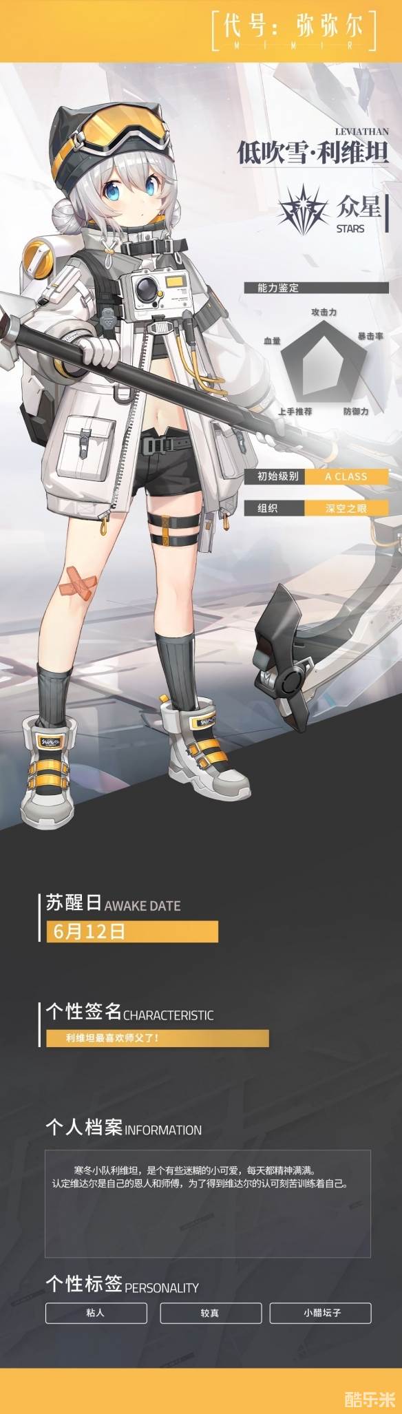 深空之眼低吹雪·利维坦怎么样?低吹雪·利维坦是深空之眼中A级的修正者,属性为冰,属于近战输出角色,那么低吹雪·利维坦在游戏中的技能怎么样呢?下面酷乐米小编为大家介绍一下《深空之眼》低吹雪利维坦技能介绍,一起来看看吧。