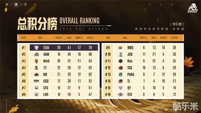 PUBG PCL2024秋季赛总冠军诞生,天霸战队领衔PCL角逐PGS大赛
