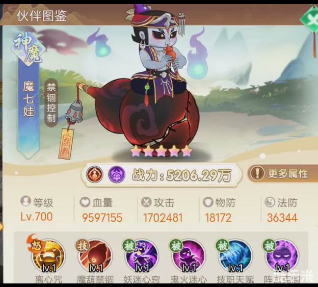 葫芦娃奇遇之旅魔七娃魔阵营6技能伙伴,下面和酷乐米小编一起来看看吧