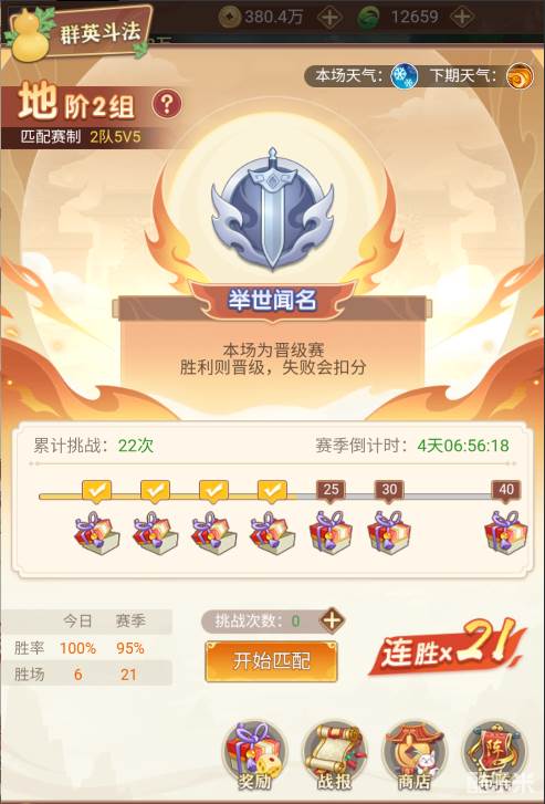 达到指定的段位即可领取丰厚的段位奖励,请配置好队伍,发起挑战吧!