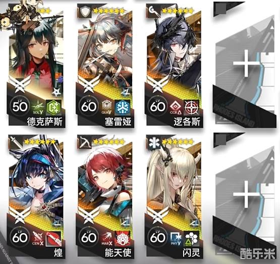 需求干员:德克萨斯(被动出门+费)、煌、塞雷娅(1技能)、能天使(3技能)、逻各斯、闪灵