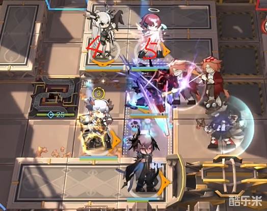 继续部署:④闪灵(向下),⑤能天使(向右)即可。