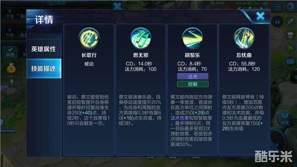 解析:三技能属于蔡文姬的招牌技能,激活技能后,大幅度提升蔡文姬范围内友方英雄的双抗,并回复血量最低的友军生命值,持续一段时间。值得注意的是,该技能的覆盖范围广,团战时召唤师需要覆盖尽可能多的友方单位。此外,召唤师还需要为蔡文姬提供高额的冷却缩减属性,增加该技能的释放频率,提升辅助能力。