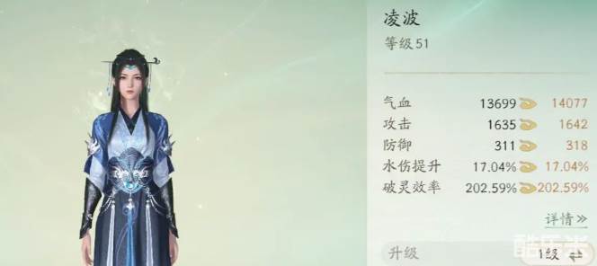 凌波的最后一个技能叫冰咒,释放后会从高空砸下冰晶,对范围内的敌人造成伤害并使其被冰冻起来,当玩家将凌波的水资质提升到40和60的时候,这个冰晶的数量还会分别增加一次,造成的伤害也会分别提升15%。