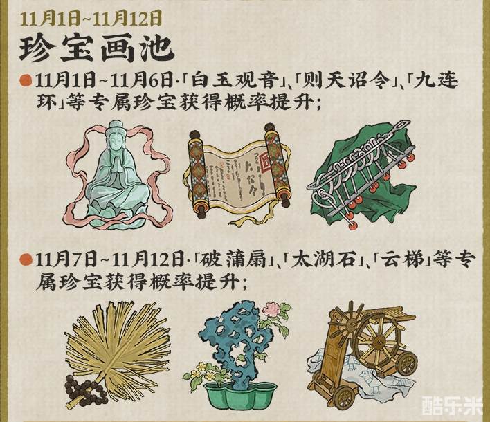 11月7日~11月12日·「破蒲扇」「太湖石」「云梯」等专属珍宝获得概率提升