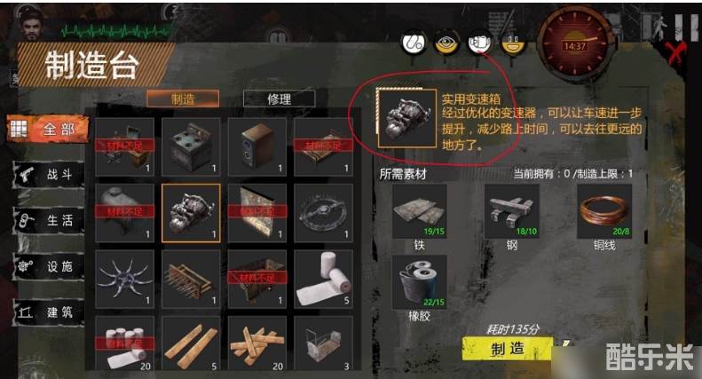 车辆可以大幅度提升战斗力和采集效率。玩家可以尽早考虑哦,还有其他的护卫车、装甲车等等。这些车辆的获取方式也与以上三种车辆类似,需要玩家先学习相应的技术,然后在工厂中制造相应的部件,最后组装成车辆。