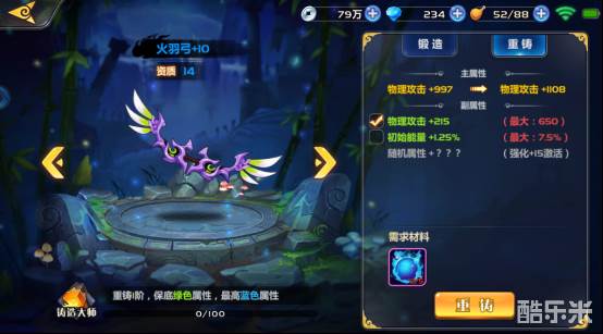 (1)神兵重铸消耗重铸石,不同资质单次重铸所需的重铸石也不同。