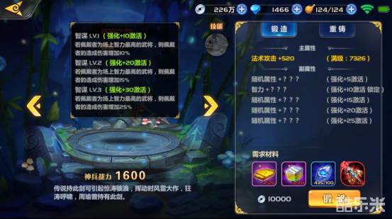 ②一把神兵最多1个神兵技能,提高神兵强化等级会提高神兵技能等级。强化每提高10级。神兵技能等级提高1级,最高三级。