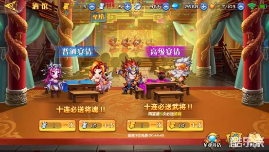玩家在酒馆中使用令牌来招募武将,令牌可通过银两、钻石、通关、每日任务等手段获得令牌。每次十连会赠送1000龙魂币,龙魂币可用于兑换自己需要的武将将魂。下面和酷乐米小编一起来看看吧