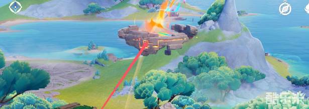 高点位置,击败此处的风史莱姆,出现发光点进行调查,再击打出现的风琥珀出现风场,通过风场到达另一处浮岛解锁传送锚点。