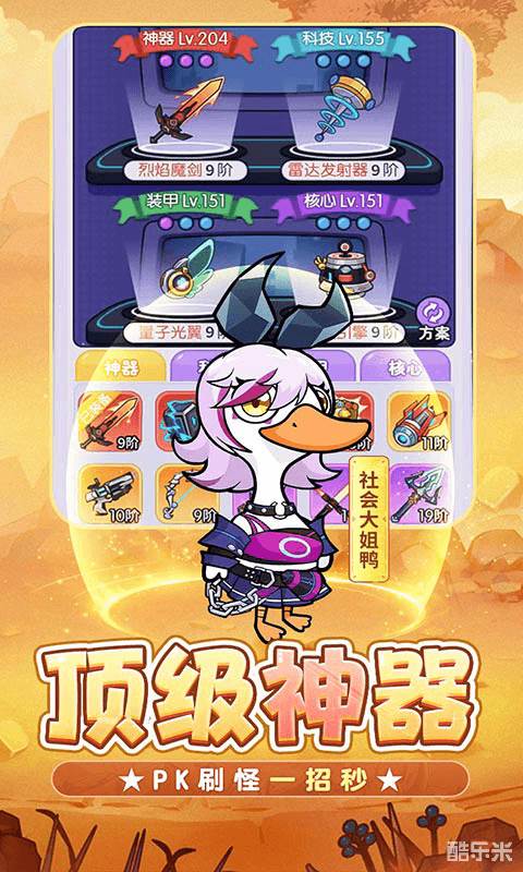 1、创新鸭鸭开箱玩法,装备通过打怪开箱获得,种类丰富。