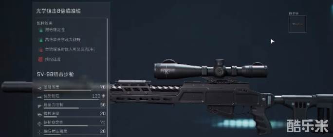 大家在针对该武器去进行改枪的时候,可优先考虑去使用6倍或更高的可变倍率瞄准镜,以便在不同距离上都能保持高精度射,同时枪口配件方面,大家也可去使用消音器来降低射击声音,进一步提高其隐蔽性,或者是使用制退器来减少后坐力,这样也能提高其连续射击时的稳定。下面和酷乐米小编一起来看看吧