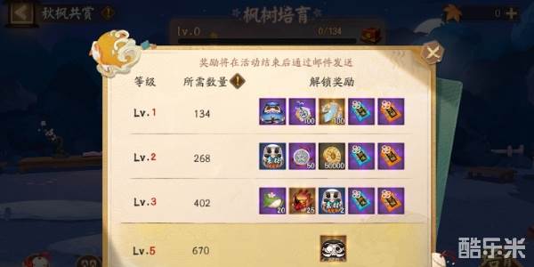 阴阳师秋枫共赏活动怎么样?阴阳师游戏里玩家想获得更多的道具物品除了完成各种任务和挑战关卡外,还可以参与游戏开启的各种活动,参与活动并完成相关任务即可获得丰厚的奖励。下面和酷乐米小编一起来看看吧