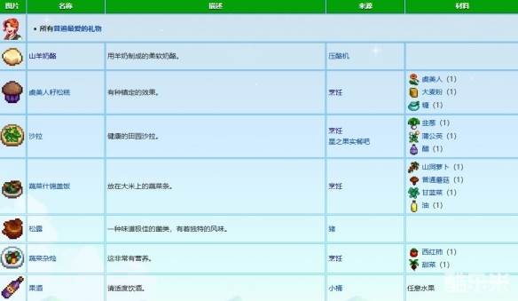 莉亚最爱的礼物是:山羊奶酪、虞美人籽松糕、沙拉等,生日当天送给获得8倍好感。