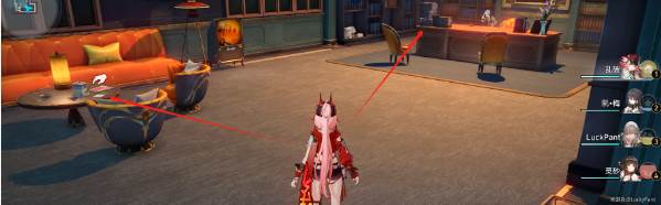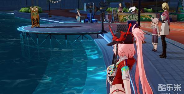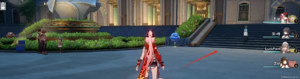 然后我们往左边转过来,看向水里,这里有一个气球,用远距离攻击的角色打掉,例如:阮梅,同协主角