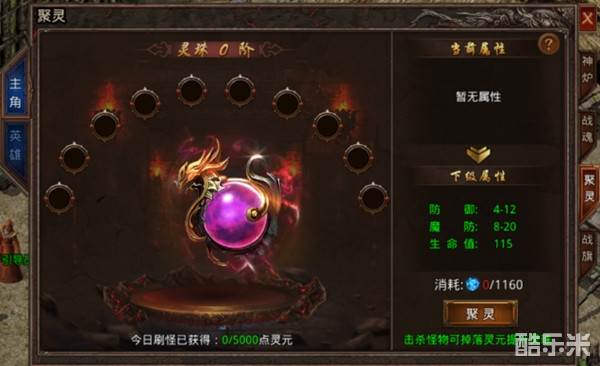 玩法介绍:使用灵元、聚灵石提升灵珠等级,获得大量生命与防御。