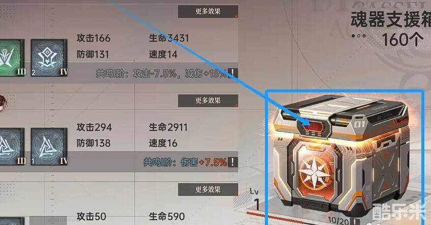 4、最后打开资源箱,让其和新获得的魂器融合,就能获得加成属性