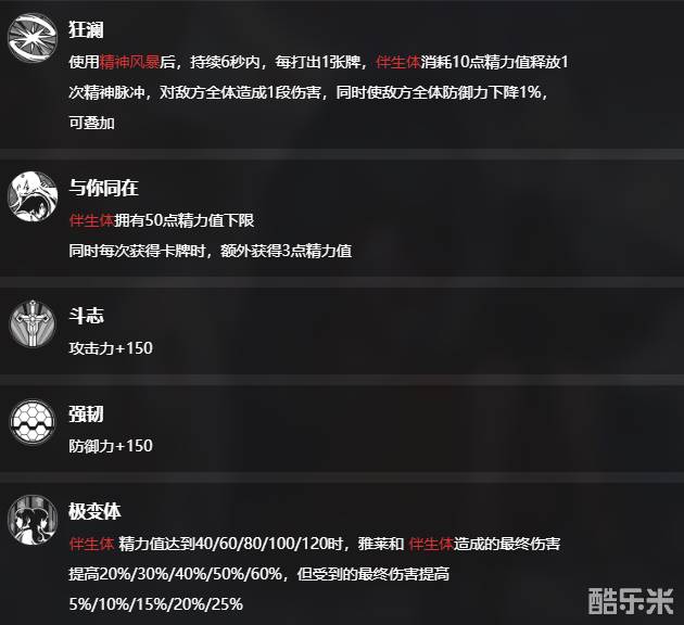每点精力值使雅莱和伴生体的普通攻击伤害提高1%