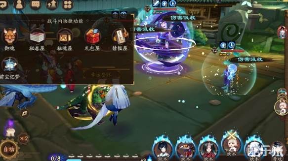 2、在副本中,点击左上角战斗内快捷功能展开功能选项,选择对应功能图标即可跳转使用御魂、秘卷屋、秘魂屋、礼包屋、情报屋、前尘忆梦等功能。